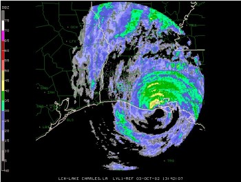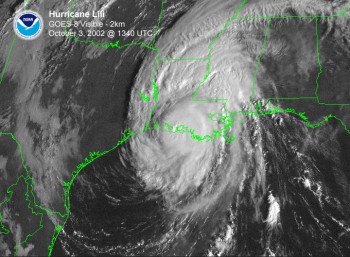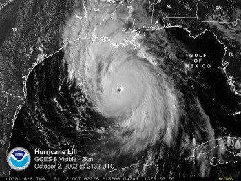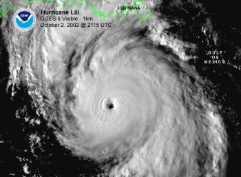 Coastal residents of Louisiana prepared for the worst, as a devastating hurricane approached the central Louisiana coast. Even inland residents were preparing for damage with inland hurricane and tropical storm watches/warnings extending as far north as southern Arkansas. As quickly as Lili bombed, she began to weaken just as the storm approached the coast. She crossed the central Louisiana coast on the western side of Vermilion Bay and Marsh Island as a category 2 storm with winds of 100 mph, weaker than forecast.