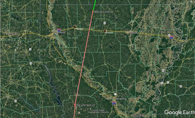 Center of Hurricane Laura Just Northwest of Alexandria at 9:50 AM CDT